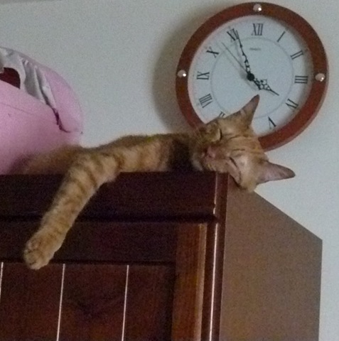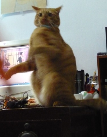 此外,牠也算很例行公事地表現溫柔,每天早上起床都會跟你很大聲地喵喵叫說早安(其實是叫妳添飼料、清大便)。加上一成不變的Welcome Home戲碼,一式三招:門口一聲叫、趴地甩頭敲地響、360度三圈翻滾。