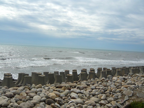 順著海線(台1線?)公路往北,很快就從台中縣跨進苗栗縣通宵,左手邊可以看到海。