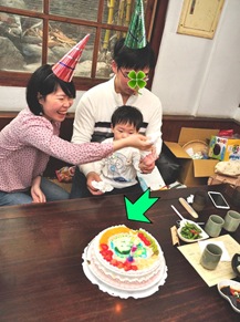 在一小段混亂之後,我們總算唱完生日快樂歌、許完願、吹下人生第一根蠟燭,然後切蛋糕了!!!