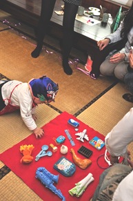 我們總共準備了19件要給他抓週,除了照片裡的,還有沒照到的麥克風、地球儀、小木槌。