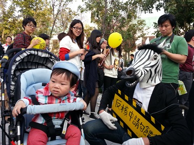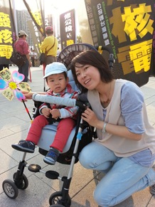 雖然那天睡過頭錯過集合,不過一起床後,我還是火速餵完午餐帶他出門,因為無論如何,我們要讓政府知道我們反對核四廠續建,更別提運作。